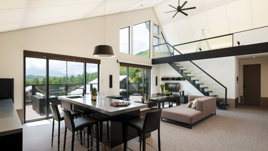 あさま空山望の大きな特長は、すべての客室が「一棟貸しヴィラ」であること。特に、出張シェフプランをご利用できる一番広いヴィラ「ポラリスプレジデンシャルスイート」では最大8名さままでご利用できます。